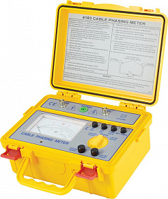 Измеритель 4183 СР напряжения и определения порядка чередования фаз относится к новому поколению измерительных приборов, предназначенных для измерения параметров сетей и устройств электропитания. Благодаря своему конструктивному и схемотехническому исполнению он обеспечивает возможность определения синхронности чередования фаз в двух различных кабелях 3-х фазной сети электропитания. Прибор позволяет проводить измерения переменного напряжения на двух пределах: 0 - 16 кВ; 0 - 32 кВ. Выбор необходимых режимов и пределов измерения легко осуществляется с помощью 4-х кнопок на передней панели прибора. Прибор позволяет оперативно проводить измерения на электроустановках и подземных энергосооружениях, в том числе в случаях отсутствия информации об их текущем рабочем напряжении. Удобное исполнение входных терминалов, в совокупности с удобным и наглядным стрелочным индикатором c зеркальной шкалой, позволяют успешно использовать фазовый тестер 4183 СР не только как средство измерения, но и применять его в целях обучения при подготовке электротехнического персонала.