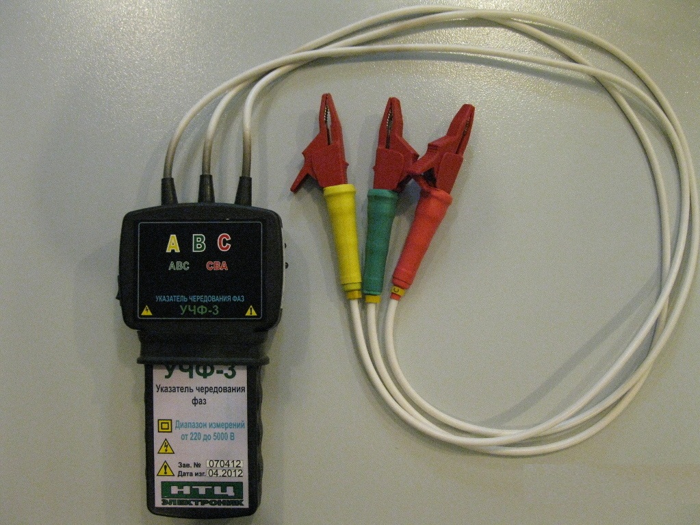 Указатель чередования фаз УЧФ-3 предназначен для определения прямой и обратной последовательности, а также отсутствие одной из фаз, в трехфазных промышленных системах электросетей напряжением от 220 до 5000 В и частотой 50 Гц, в том числе в сетях с преобразователями частоты (ПРЧ).
