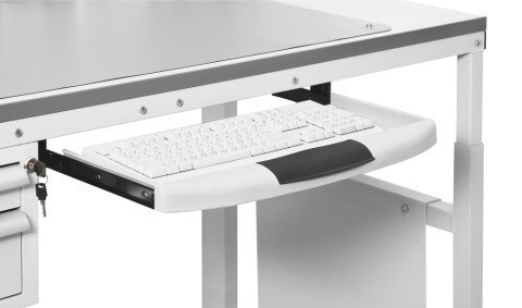 Подставка под клавиатуру снабжена механизмом выдвижения. Конструкция механизма обеспечивает очень легкое скольжение.